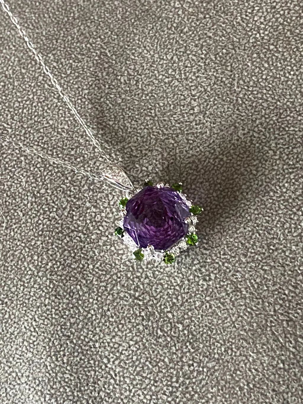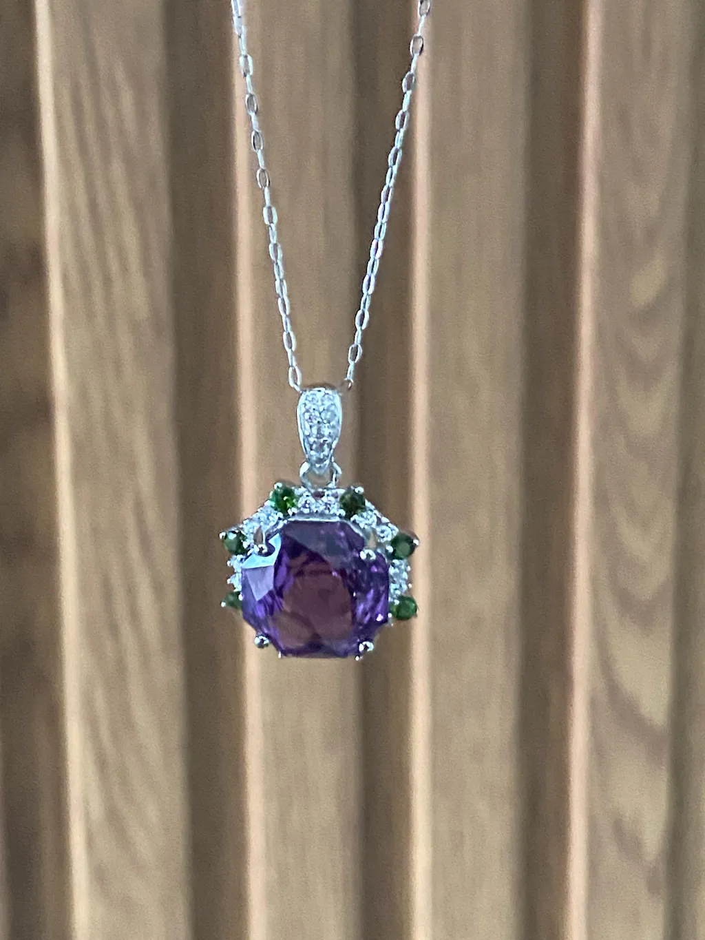 The Amethyst Halo Pendant Necklace shines with a soft violet glow, capturing the calm and mystery of twilight skies. A radiant amethyst gemstone rests at the center, surrounded by a delicate halo that sparkles gently with every movement. Set upon a polished silver necklace, it reflects quiet elegance and inner strength. Crafted in fine gemstone jewelry, this dainty necklace makes a thoughtful gift for her, an elegant jewelry piece that carries the serene beauty of the purple stone necklace and the timeless grace of light encircling love.