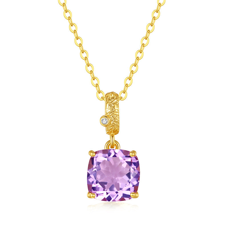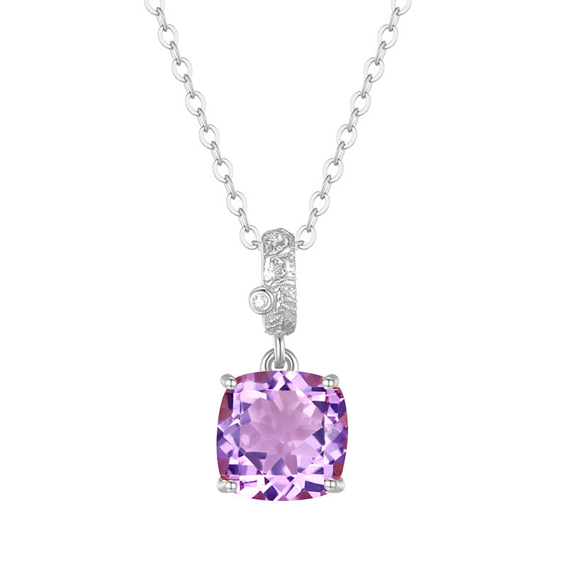 Cushion Cut Amethyst Necklace glows with a soft violet depth, like a quiet evening sky held in a perfectly rounded cushion cut that feels gentle yet full of presence. The design is refined and minimal, letting the rich amethyst stone take center stage while resting delicately at the collarbone. A graceful piece in Amethyst jewelry, it also fits beautifully into dainty jewelry, offering a subtle balance of color, calm, and timeless elegance.