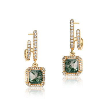 Moss Agate Halo Drop Earrings