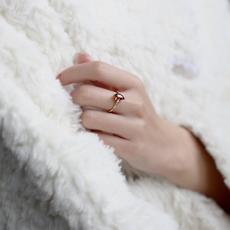 The marquise-cut garnet glows with a deep, wine-red warmth, its elongated shape adding a graceful, vintage charm. Set in a delicate band that highlights the gemstone’s rich color, this piece brings a touch of classic elegance to any jewelry collection. A lovely choice for someone who adores meaningful gemstone rings and nature-inspired jewelry, whether it’s for a celebration, a milestone, or simply a moment that calls for something beautifully heartfelt.