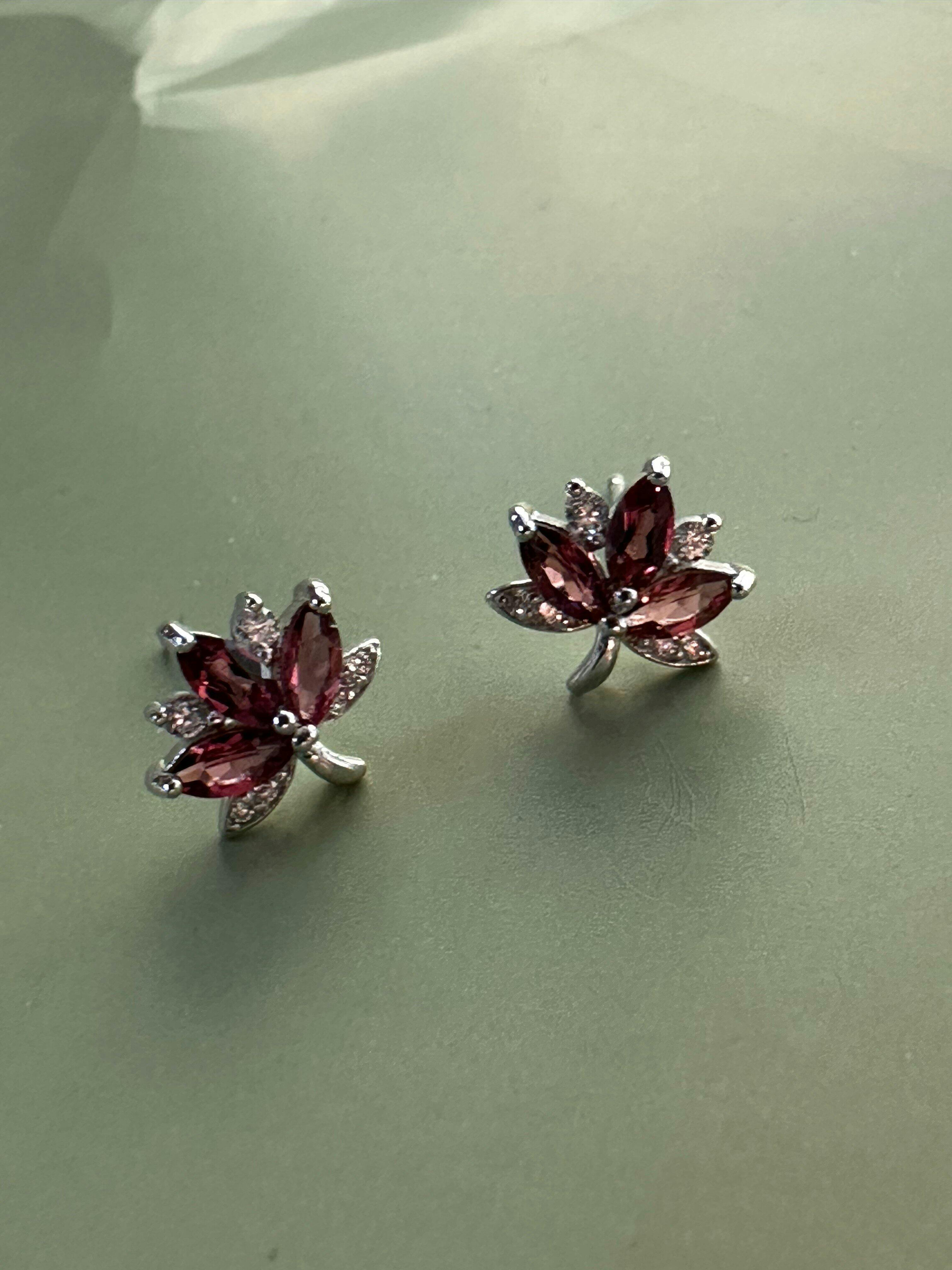 Experience the beauty of nature with our stunning Garnet Maple Leaf Earrings. Handcrafted with a unique maple leaf design and adorned with rich garnet stones, these earrings will add a touch of elegance to any outfit. Perfect for nature lovers and those who appreciate fine jewelry.