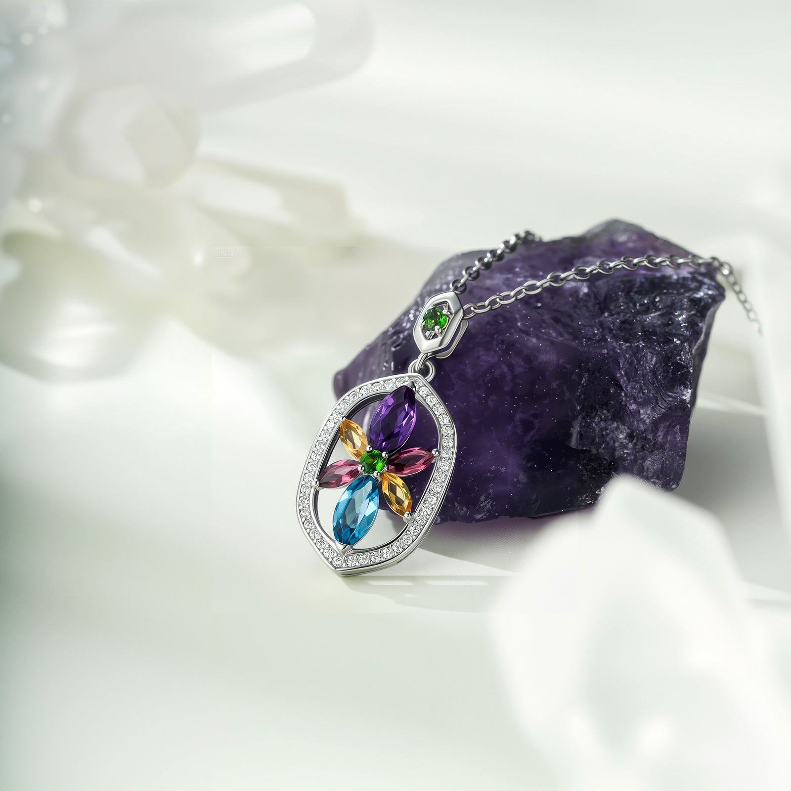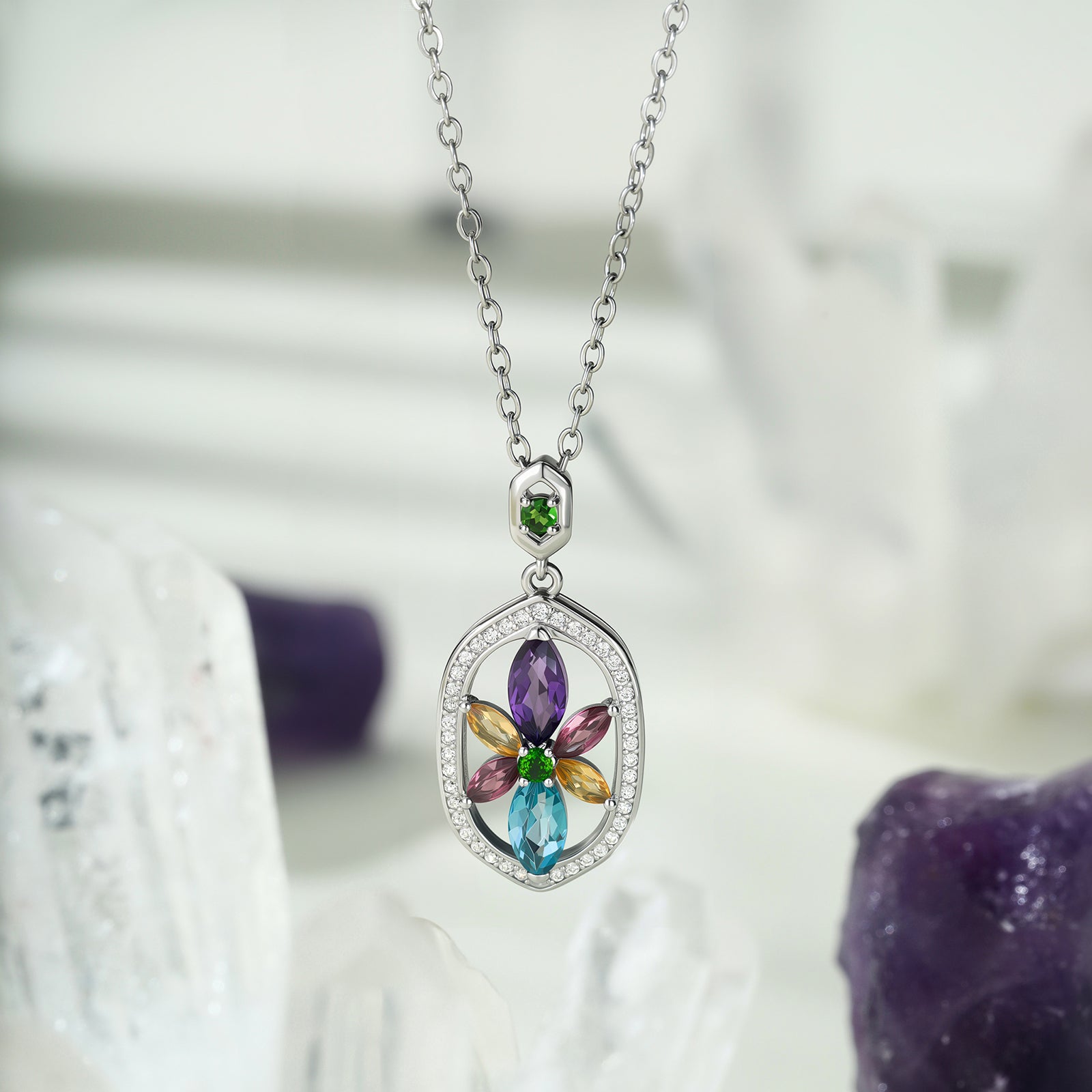 This Rainbow Tourmaline Pendant Necklace features natural tourmaline gemstones in a harmonious array of vibrant hues, as if capturing the brilliance of a rainbow at your neckline. Each crystal-clear stone glimmers with radiant luster under the light, exuding both elegance and vitality. The refined yet understated design highlights the natural beauty of the gems, allowing the wearer to embody confidence and grace with every movement. Perfect for everyday wear or special occasions, it adds a touch of brilliance to any ensemble and serves as an ideal piece to showcase taste and sophistication.