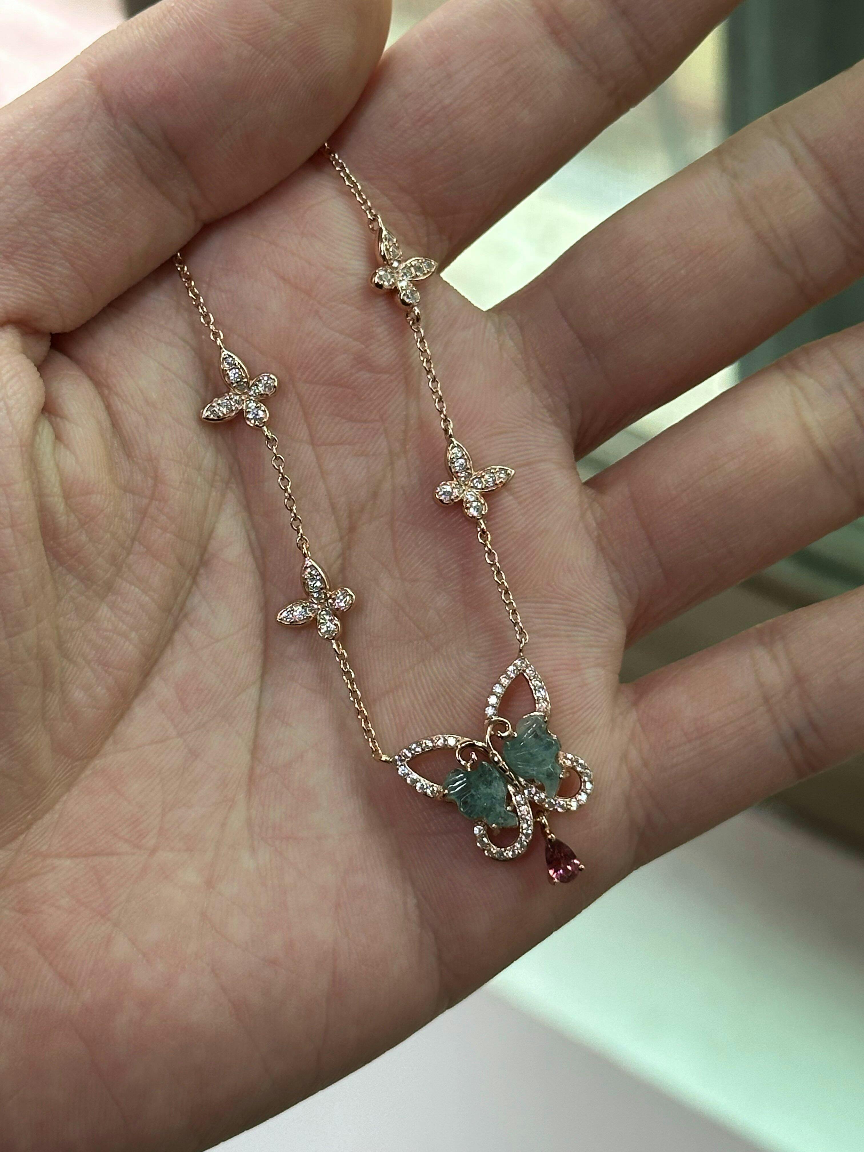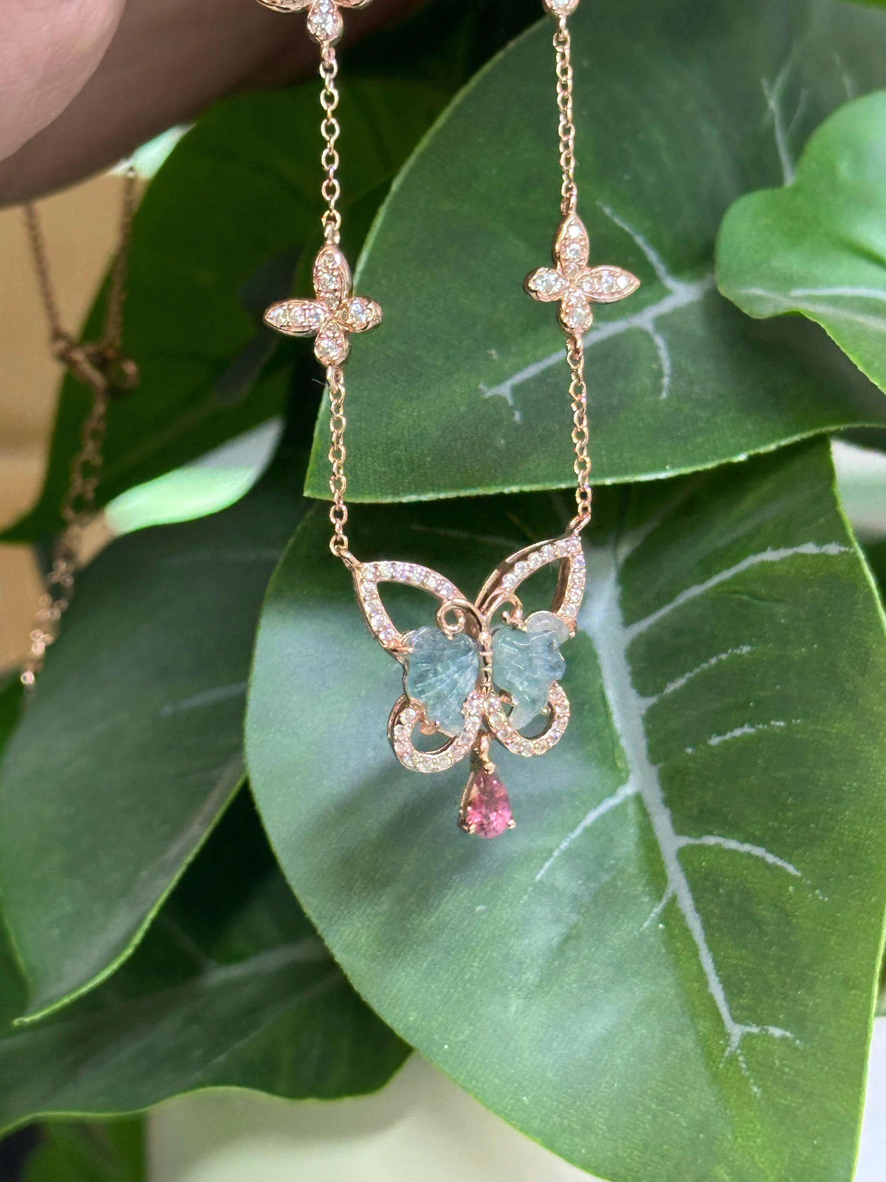 This stunning Tourmaline Butterfly Necklace features a unique design that will add a touch of elegance to any outfit. The beautiful tourmaline gemstones make this necklace a statement piece that will catch the eye and make you feel confident and stylish. A must-have for any jewelry lover!
