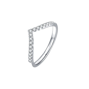 The V-Shaped Pavé Moissanite Band glimmers with a gentle arc of tiny stones that catch the light with every movement. Its elegant contour frames engagement rings beautifully, creating a graceful stacked look that feels refined and modern. A sparkling piece of moissanite jewelry that adds quiet brilliance to both everyday wear and meaningful celebrations.