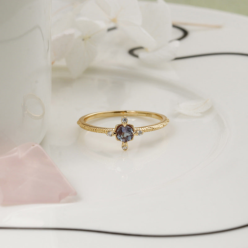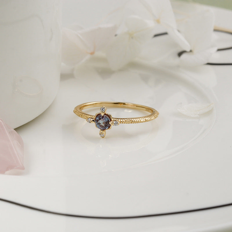 Light and graceful, the Dainty Alexandrite Ring features a slender band that lets the color-changing gemstone quietly shine. Subtle shifts of green and violet appear as the light moves, giving this gemstone ring a delicate sense of wonder rooted in nature jewelry. Designed to feel effortless on the hand, it adds a quiet sparkle to everyday moments while still feeling special when it catches the light just right.