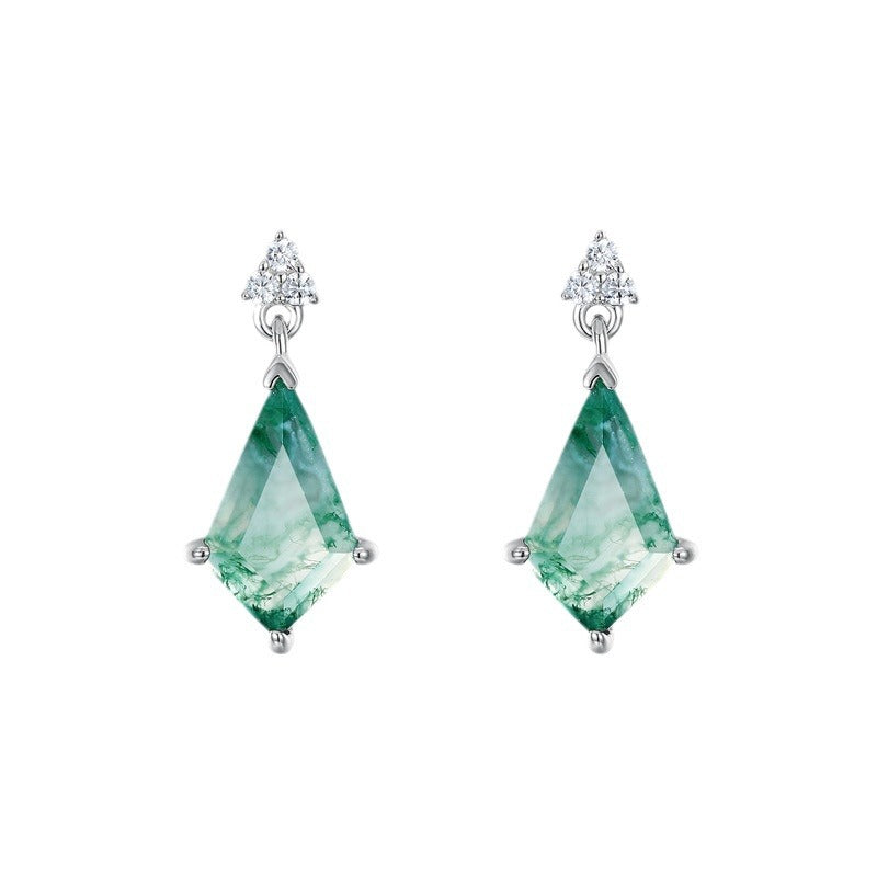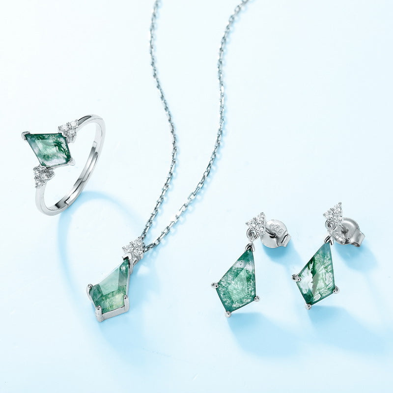 - S925 Silver, Moss Agate, Zirconia