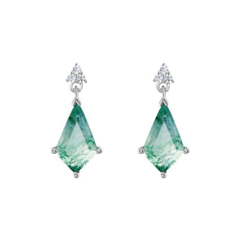 Silver Moss Agate Kite Earrings