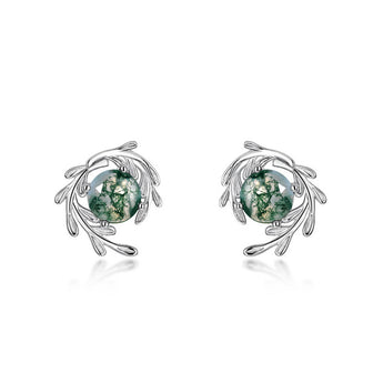 Upgrade your style with these stunning Moss Agate Leaf Stud Earrings. The unique leaf design adds a touch of nature to any outfit, while the moss agate stone brings a sense of grounding and balance. Elevate your look and channel your inner nature lover with these beautiful earrings.
