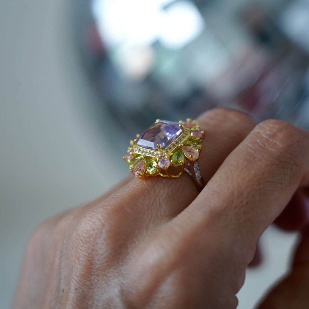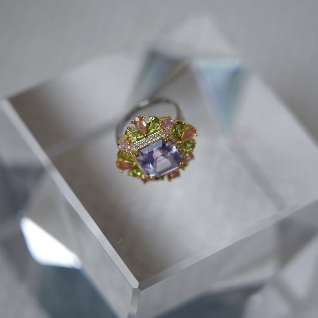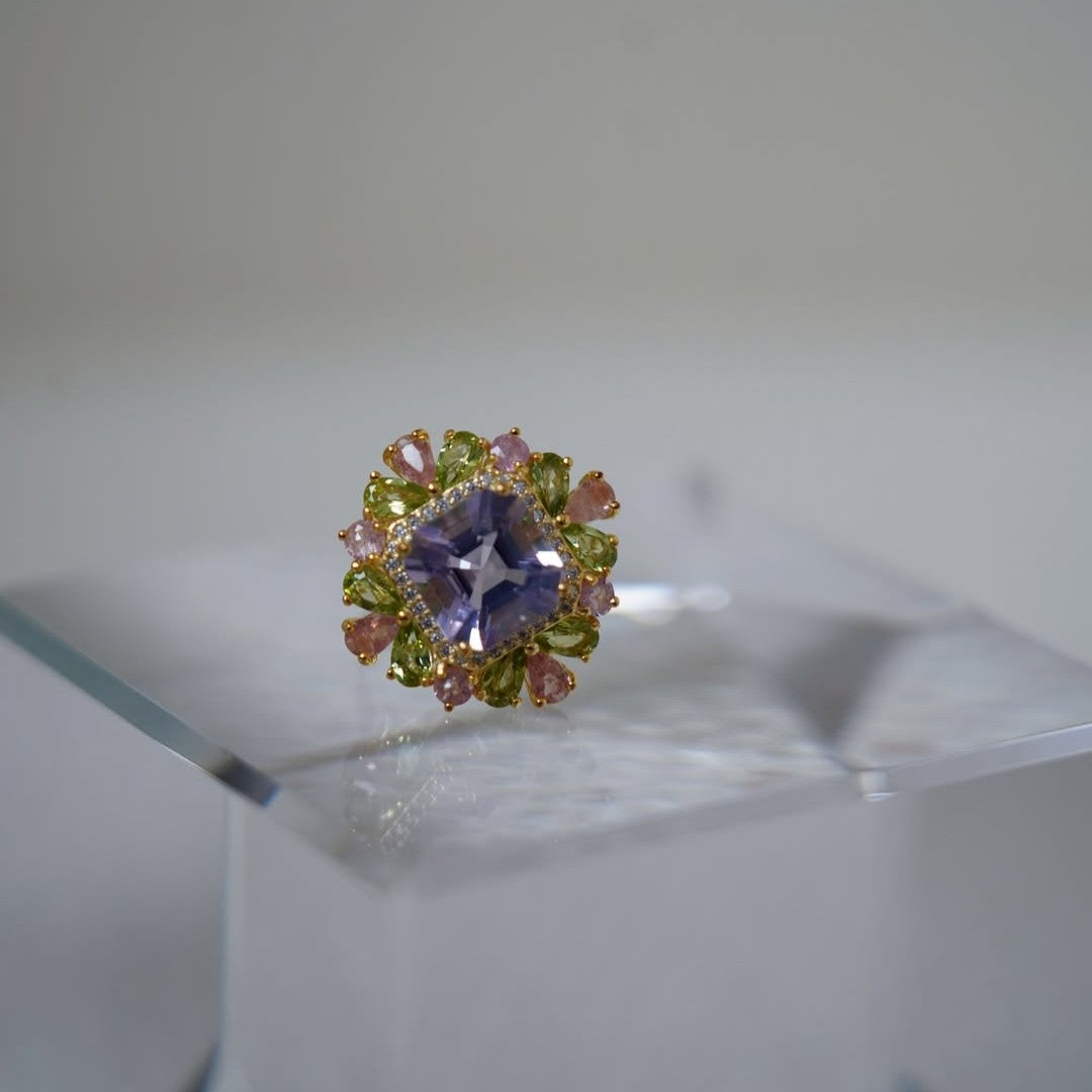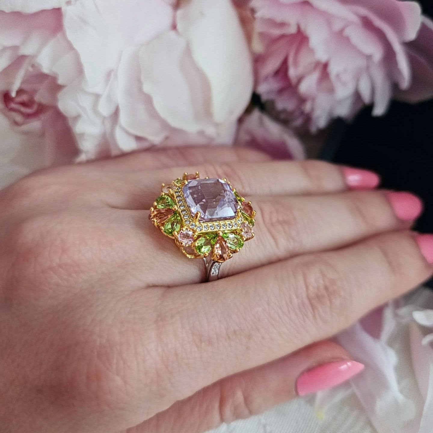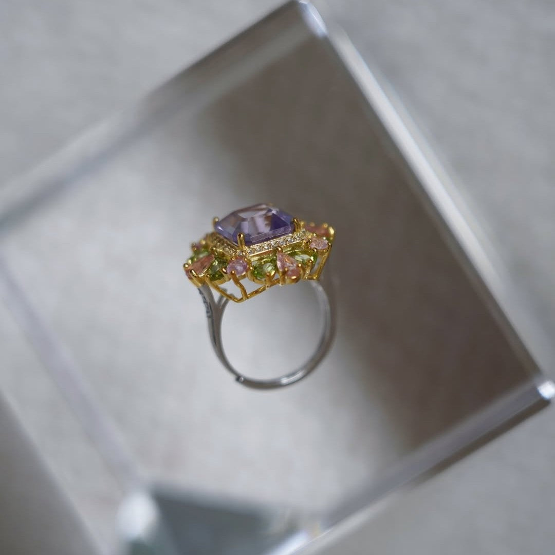 This beautiful Pink Tourmaline Peridot Ring boasts a stunning design that will make a statement with any outfit. The vibrant pink and green gemstones are sure to catch the eye, making this ring a unique and elegant addition to your jewelry collection.