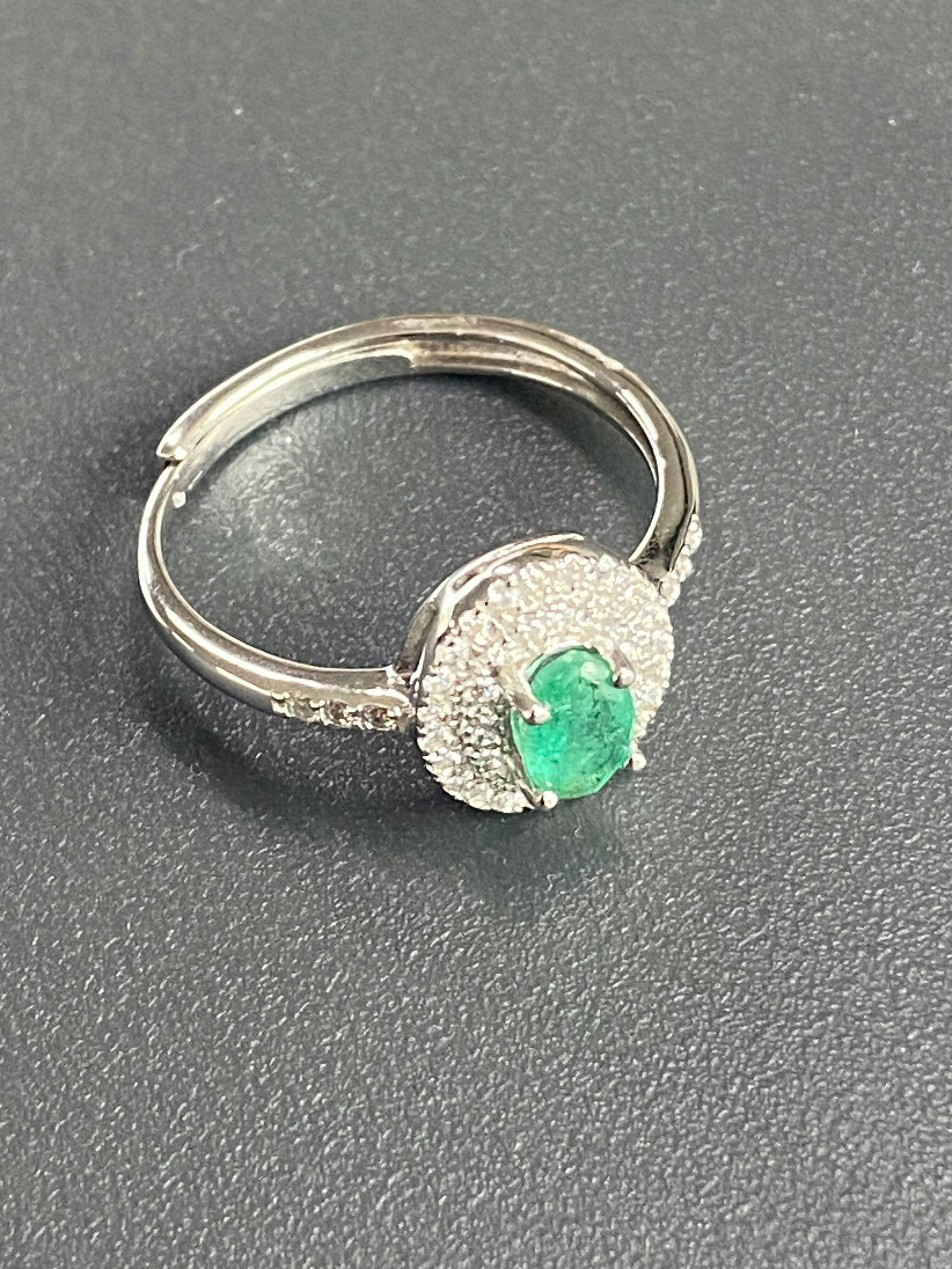 Elegant and refined, this Emerald Halo Oval Ring radiates timeless charm. A vivid green emerald gemstone sits at the center, surrounded by a dazzling halo of sparkling stones, capturing the essence of sophistication and grace. Crafted in sterling silver, this emerald ring is a symbol of everlasting beauty, perfect for weddings, anniversaries, or moments meant to be treasured.
