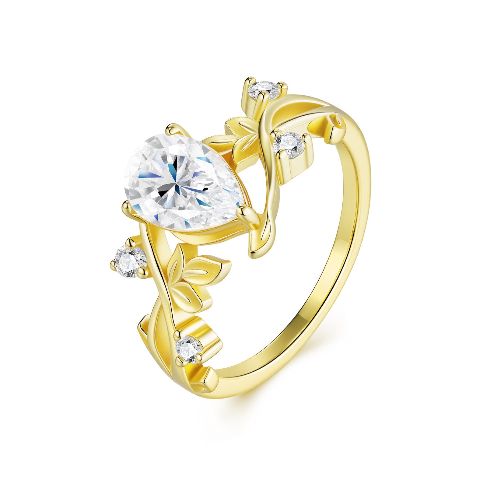 The Pear Moissanite Branch Engagement Ring captures the charm of nature with its delicate branch-inspired setting embracing a radiant pear-cut moissanite. The gemstone sparkles with crisp, brilliant light, creating an ethereal look that feels both romantic and timeless. A beautiful choice for marking a promise, celebrating a love story, or proposing with a piece that feels poetic and full of meaning.