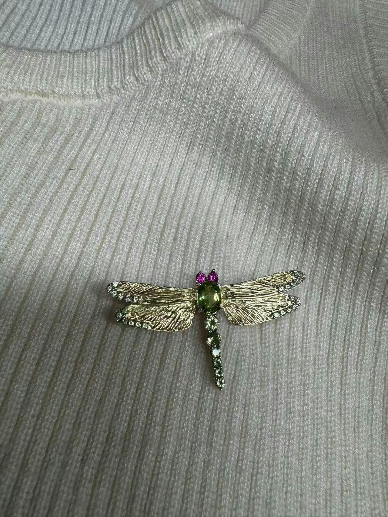 Bring a touch of nature to your outfit with our Peridot Dragonfly Brooch! Crafted with stunning peridot stones, this brooch is perfect for adding a pop of color to any look. Fly away with this gorgeous accessory and make a statement wherever you go.