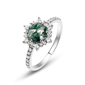 Moss Agate Snowflake Halo Ring