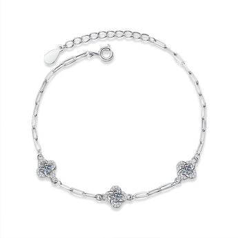 Discover the beauty of our Moissanite Four Leaf Clover Bracelet! With its elegant design and sparkling stones, this bracelet is sure to turn heads. Crafted with high-quality moissanite, it shines just like a diamond without the hefty price tag. Add a touch of luck and luxury to your wardrobe today!