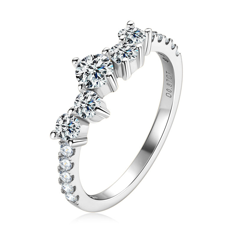 The Silver Five Stone D Color Moissanite Ring glows with a row of bright, icy white moissanites that shimmer with every small movement. The clean silver band highlights their clarity and fire, creating a look that feels both refined and full of sparkle. A beautiful choice when you want something elegant that catches light effortlessly and adds a quiet touch of brilliance to your day.
