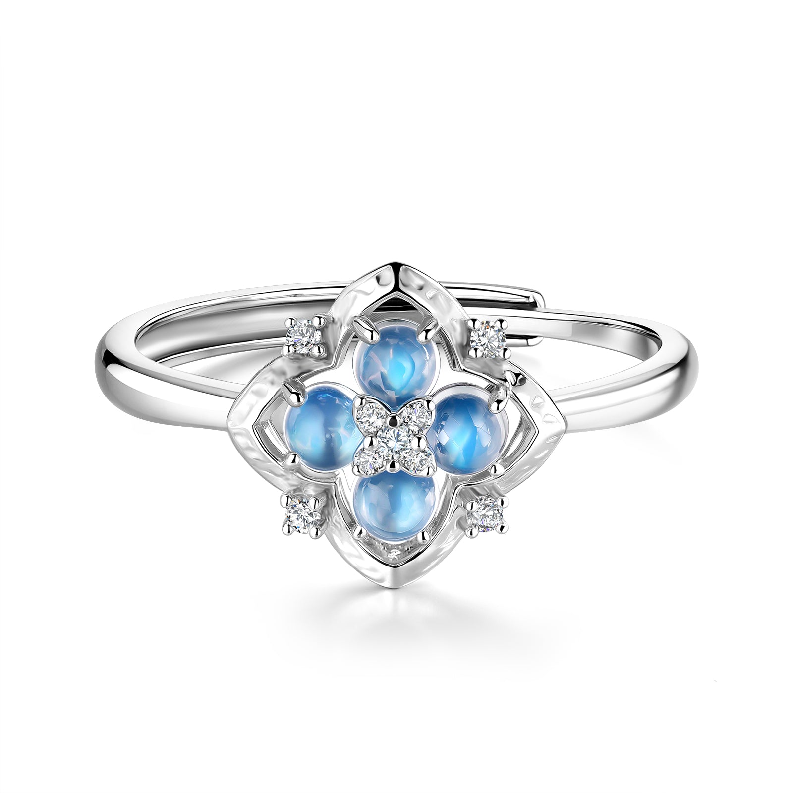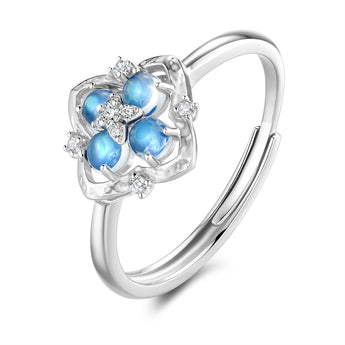 Elevate your everyday style with this stunning blue moonstone ring. The ring features four genuine blue moonstones, known for their beautiful blue glow (adularescence), set in a minimalist silver band. This dainty and versatile design makes it a perfect stacking ring for your jewelry collection, effortlessly complementing both casual and elegant looks.