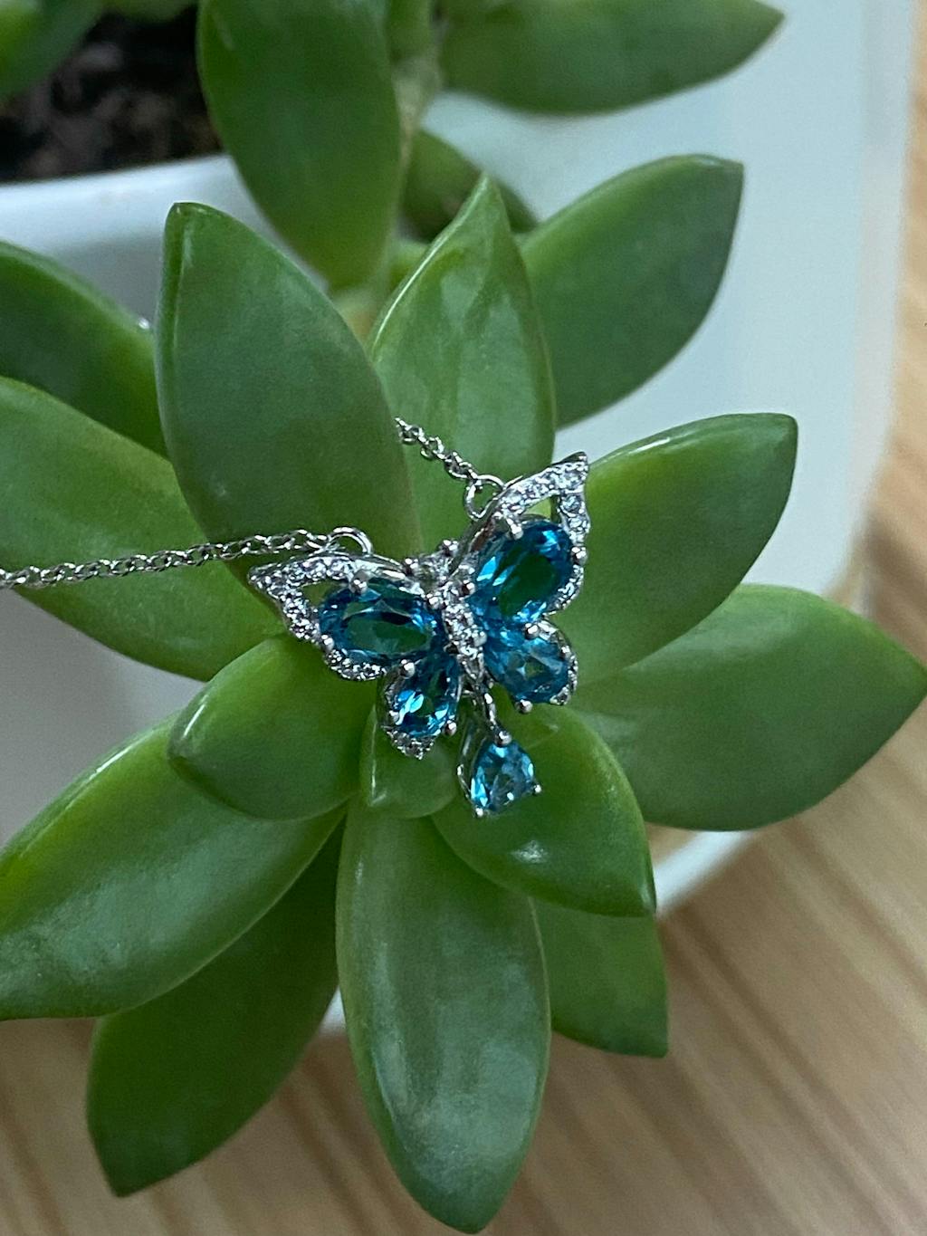 Bring elegance and sophistication to your look with our London Sapphire Butterfly Necklace. The intricate butterfly design and stunning sapphire stones will add a touch of luxury to any outfit. A must-have accessory for any fashion-forward individual. Embrace your inner beauty and grace with this exquisite piece.