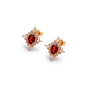 Oval garnet stones anchor these earrings with deep, wine-toned brilliance inspired by vintage style jewelry. The classic silhouette highlights the richness of garnet jewelry while keeping the design refined enough for everyday wear. Known as the January birthstone, garnet carries symbolism of strength and devotion. These earrings make a meaningful gift for her or an elegant addition to any gemstone jewelry collection.