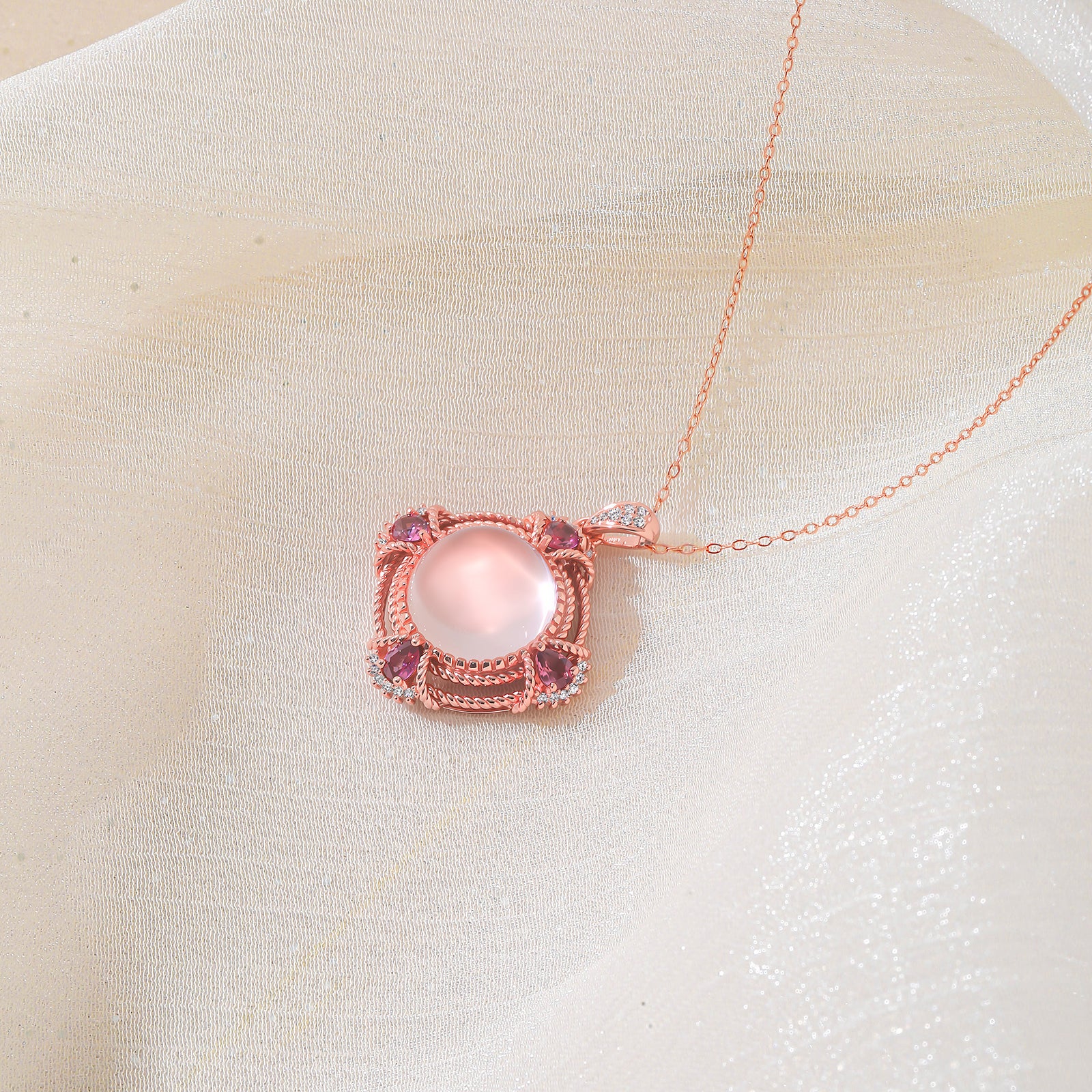 The Vintage Pink Crystal Pendant Necklace glows with a gentle blush, capturing the charm of a bygone era. A sparkling pink crystal rests gracefully on a polished silver necklace, surrounded by intricate vintage-style details that whisper of romance and grace. Crafted in fine gemstone jewelry, it reflects both tenderness and timeless beauty. This dainty necklace makes a heartfelt gift for her, an elegant jewelry piece that brings a soft, feminine glow to every moment.